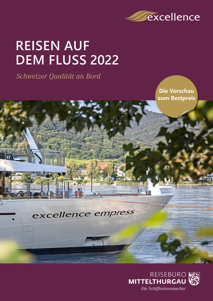 Die Excellence-Saison 2022 ist eröffnet. Der zur Twerenbold Reisen Gruppe gehörende Kreuzfahrt-Spezialist Reisebüro Mittelthurgau hat soeben den Katalog «Reisen auf dem Fluss 2022 - Schweizer Qualität an Bord» lanciert. Dabei wird festgehalten: Der günstigste Moment zum Buchen ist jetzt! Die neue Vorschau-Kollektion mit klassischen und aussergewöhnlichen Flussrouten quer durch Europa bietet nicht nur ab sofort die Möglichkeit, sich die Lieblingskabine auf einem der elf Excellence-Schiffe zu sichern, sondern dies auch zum Bestpreis. Erstmals gibt es nämlich den «Früh = Fair-Rabatt», mit einem Preisabschlag bis 150 Franken pro Person.