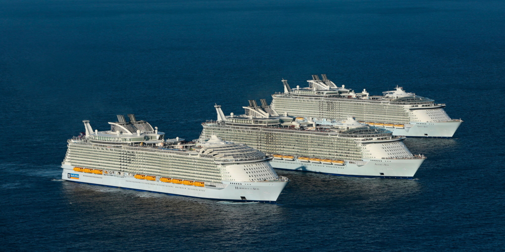 Die Royal Caribbean-Schiffe Oasis of the Seas, Allure of the Seas und die Neuste in der Runde, die Harmony of the Seas, trafen sich letzten Freitag zum ersten Mal vor dem Hafen Port Everglades in Florida, wo die Harmony of the Seas begrüsst wurde. Die offizielle Taufe des grössten Kreuzfahrtschiffs der Welt findet am 10. November statt.