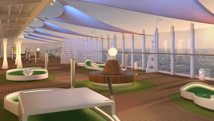 Neu kann man auch an der frischen Luft trainieren. Den Outdoor-Minigolfplatz gibt's aber auch auf anderen AIDA-Schiffen.