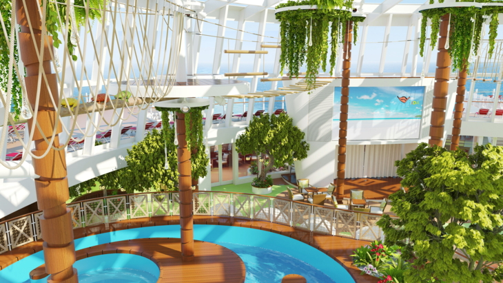 Auch auf der AIDAnova gibt es, wie bei AIDAprima und AIDAperla, den Aktivitätsbereich Four Elements. Neu daran ist, dass dieser in eine Art Dschungel verwandelt wird. Der Klettergarten und zahlreiche andere Bereiche werden mit echter Vegetation «geschmückt». Der «Lazy River» heisst neu «Wild River» und führt nun durch einen Dschungel, darüber hinaus gibt es neu drei (statt zwei) Wasserrutschen.