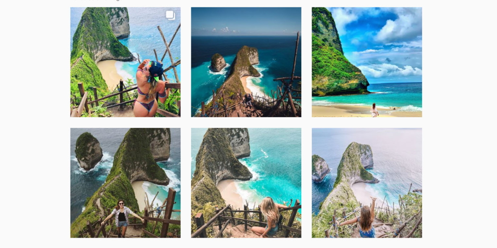 Im Jahr 2018 entstand ein riesiger Instagram-Hype um den Dinosaurier-Felsen am Kelingking Beach auf der indonesischen Insel Nusa Penida. Laut Travelbook galt die kleine Insel vor einem Jahr noch als Geheimtipp, da dort noch nicht so viele Touristen unterwegs waren. Um an den paradiesischen Strand zu gelangen, braucht es einen ungefähr 45-minütigen Spaziergang die steile Klippe hinunter. Von der Klippe aus ist der Felsen in Form eines Dinosauriers sehr gut zu erkennen. Das ist der perfekte Spot, um ein gelungenes Foto für Instagram zu schiessen. Entweder mit dem Selfiestick oder man sucht sich einen halbwegs professionellen Fotografen. Schilder am Strassenrand kennzeichnen den Weg zu den Instagram-Hotspots auf der kleinen Insel und liefern sogar noch den passenden Hashtag dazu. Der Hashtag #kelingkingbeach wird fleissig genutzt, denn mehr als 126'000 Beiträge wurden unter diesem Hashtag mit der Öffentlichkeit geteilt.