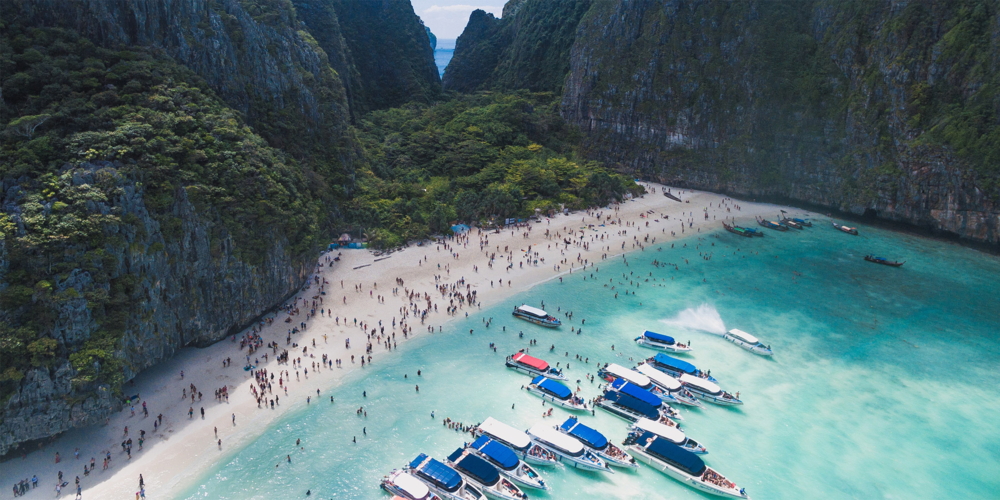 Der Traumstrand wurde vor allem durch den Hollywoodfilm «The Beach» mit Leonardo di Caprio berühmt. Zu Spitzenzeiten in der Hochsaison reisten täglich bis zu 5000 Touristen an. Der Natur und dem Öko-System tat das gar nicht gut: Korallen wurden zerstört und die Reisenden liessen ihren Abfall unachtsam liegen. Irgendwann reichte es den Behörden und im Jahr 2018 wurde die Bucht für vier Monate geschlossen. Ausserdem dürfen seit der erneuten Öffnung nur noch 2000 Leute täglich im Paradies entspannen.