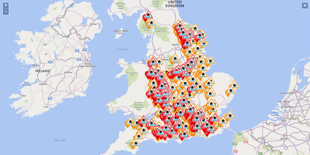 Rund 400 Häuser versanken alleine in England in den Wassermassen, sodass über 1000 Einwohner zur Flucht gedrängt wurden. Zahlreiche Strassen wurden gesperrt und der Bahnverkehr ist teilweise noch immer unterbrochen. In Nordengland werden weiter steigende Flüsse prognostiziert. Die Behörden appellieren daran, wachsam zu sein und sich gegen Überschwemmungen zu wappnen. In einigen Landesteilen, unter anderem im nordenglischen Yorkshire, stehen Soldaten als Rettungshelfer im Einsatz.