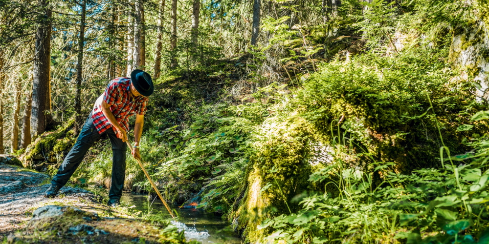 Den Weg entlang der Bisse Vieux kennt Landwirt Jean-Charles Bornet wie seine Westentasche. Seit mehr als 35 Jahren ist er Gardien de Bisse, was bedeutet, dass er Chef über diese Suone ist. Schon mit 10 Jahren habe er mitgeholfen, sie in Stand zu halten, erzählt er stolz. Deshalb sei sie ihm ans Herz gewachsen, «fast wie ein Kind». Mit einem Rechen läuft er drei Mal pro Woche die sieben Kilometer lange Bisse ab und kontrolliert, ob nicht irgendwo Äste oder Steine die Wasserleitung verstopfen. Denn das Wasser, das die Bisse Vieux aus dem Bach La Printse speist, ist wertvoll.