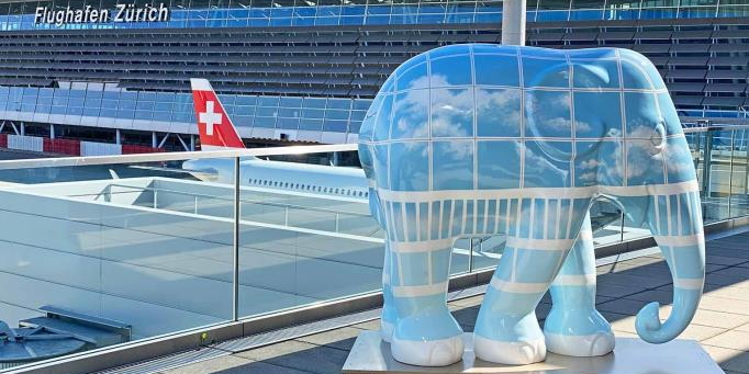 Bunte Elefanten zu Besuch am Flughafen Zürich