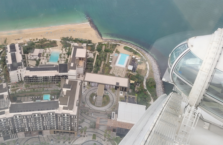 Die Rundreise beträgt 48 Minuten. Und die Aussicht, das ist wirklich nicht übertrieben, ist phänomenal, untertags und abends noch mehr. Die 360 Grad-Besucherkapseln bieten Panoramablick auf das Meer, The Palm und die Skyline der Metropole.