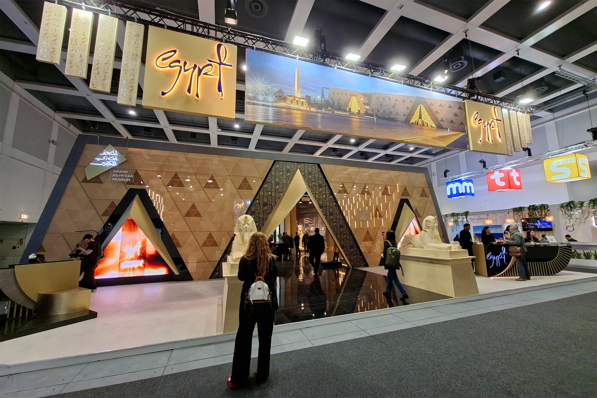 Er ist nicht der grösste Stand der ITB Berlin – aber ganz bestimmt derjenige mit der grössten Liebe zum Detail. In einer liebevoll inszenierten Mini-Ausstellung entführt er die Besucherinnen und Besucher ins Alte Ägypten. Bei stimmungsvoller Beleuchtung präsentieren sich Kunstwerke und detailgetreue Repliken, wie man sie aus Tempeln und geheimnisvollen Grabanlagen kennt. Und es bleibt nicht nur beim Staunen: Wer möchte, kann sich seinen eigenen Namen in Hieroglyphen verewigen lassen.