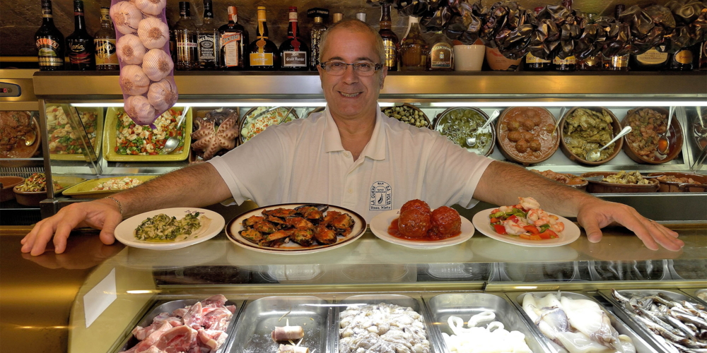 Das Lokal ist fast immer gut besucht, denn kaum irgendwo in Mallorcas Inselhauptstadt ist die Auswahl an Tapas so gross. Nur einen Haken hat die Sache: Bei dem Versuch, sie alle zu probieren, scheitert man unweigerlich, denn die Vitrinen sind so üppig gefüllt, dass mehrere Besuche nicht genügen würden, um alles zu kosten. «Nehmen Sie sich Zeit und kommen Sie wieder», sagt López und lacht.