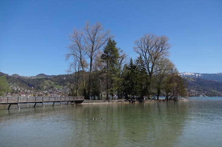 Eine kurze Wanderung in Thun führt vom Kleist-Inseli zum Grunderinseli. Die kleine Insel ist durch einen Fussgänger-Holzsteg mit dem Festland verbunden. Es gibt dort Feuerstellen, Sitzbänke, Picknicktische und eine herrliche Aussicht über den Thunersee. Ausruhen mit Blick auf den Niesen kann man entlang des Panorama Rundwegs Thunersee. Die Highlights des Weges sind sicher die beiden spektakulären Hängebrücken in Sigriswil und Leissigen. Weitere Infos.