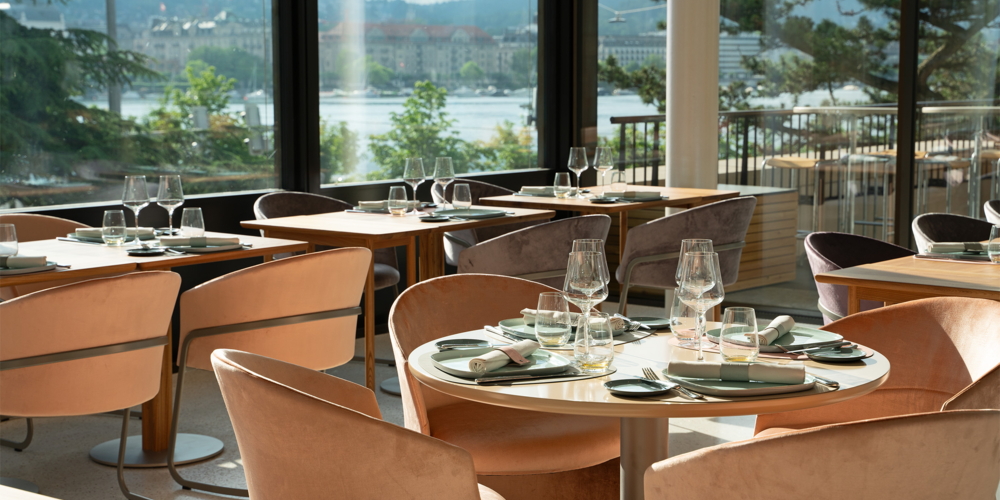 Das LUX lockt nicht nur mit einem spannenden Food-Konzept, sondern auch mit einer grosszügig bestuhlten Terrasse, von der man nicht nur den direkten Blick auf den See hat, sondern bei gutem Wetter bis zu den Alpen schauen kann. Drinnen ist die Einrichtung und das Ambiente vom Lichtspiel des Morgenschimmers, dem Funkeln des Regens, den Nebelschleiern und der Abendröte über dem See inspiriert.