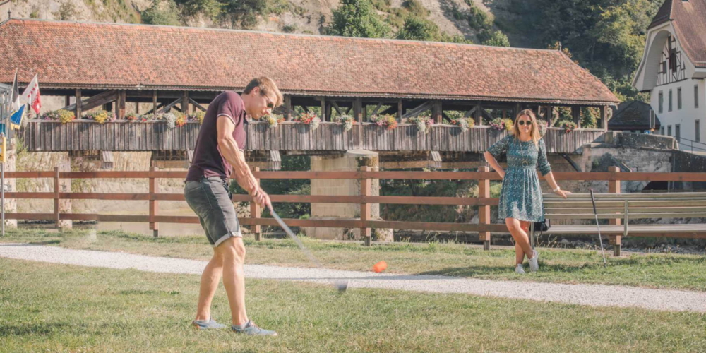 Eine Stadt zu entdecken, geht auch per Citygolf. Die originelle Idee, golfend durch die Stadt zu ziehen, gibt's in Fribourg schon seit 15 Jahren. Spass und Herausforderung beim Gang quer durch die Altstadt gehören dazu.