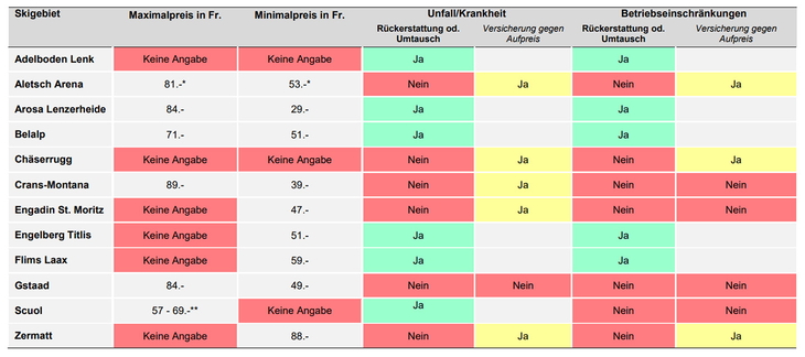 Ein weiteres Problem betrifft die Rückerstattung von Tickets. In sechs Skigebieten, darunter Aletsch Arena und Crans-Montana, erhalten Kundinnen und Kunden bei Unfall, Krankheit oder Betriebseinschränkungen keine Erstattung. Teilweise wird eine kostenpflichtige Versicherung als Zusatzoption angeboten. Stalder fordert mehr Transparenz und die Abschaffung zusätzlicher Kosten für Rückerstattungen: «Die Skigebiete sollten ihre Preise klarer kommunizieren und faire Bedingungen schaffen.»