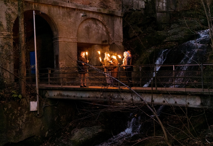 Beim ersten Abstecher in die abendliche Mülenenschlucht sind warme Kleidung und gutes Schuhwerk angesagt. Ganz im Sinne der Winterromantik werden hier im Schein von Fackeln Sagen und Traditionen der Region vermittelt, abgerundet von wärmendem Punsch oder Glühwein beim Restaurant Dreilinden. Besonders empfehlenswert ist die Runde übrigens am 31. Dezember: Im Rahmen einer Silvesterführung erzählen die Guides unter anderem von Bären und Neujahrsbräuchen.