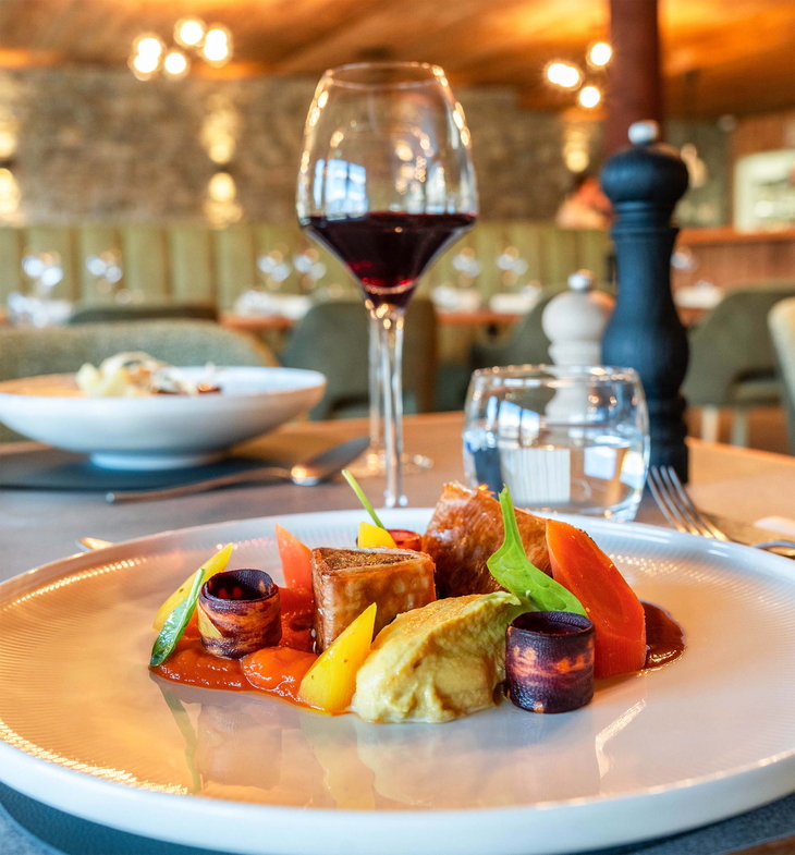 Panoramablick herrscht ebenfalls im grossen Restaurant mit seiner Terrasse. Hier stehen lokale Produkte im Vordergrund. Es ist indes nicht der einzige Ort, an dem Genuss grossgeschrieben wird. Nach einem Tag auf der Piste kann man auch an der Aprés-Ski-Bar «Ô Sapin Bleu» am Fusse des Sessellifts Les Masses Drinks und kleine Gourmet-Snacks bestellen.