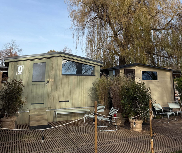 Wo im Sommer im Strandbad Uster Hochbetrieb herrscht, ist es im Winter ruhiger, aber nicht ganz still. Direkt am Greifensee entsteht dann eine kleine Saunalandschaft. In drei aufgeheizten Holzfässern wird geschwitzt, zum Abkühlen springt man in den See. Entspannung bietet die gemütlich eingerichtete Ruhejurte. Wer sie abends besucht, bekommt den Sternenhimmel inklusive serviert. In der Empfangsjurte gibt’s heissen Tee oder eine Suppe.