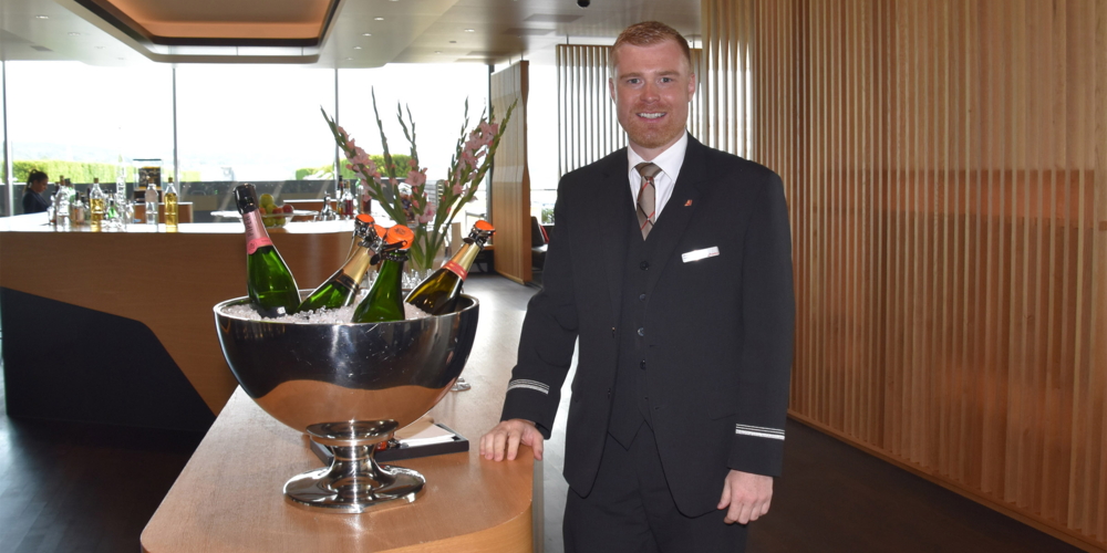 Seit 2018 ist Michael Schiess (33) wieder zurück bei der Swiss. Der ausgebildete Eidg. Dipl. Hotelier und Restaurateur flog als Cabin Crew Member von 2007 bis 2011 für die Swiss und war zwischenzeitlich bei Celebrity Cruises und InterContinental tätig, später bei Swissasia Trading in Shenzhen in China – Schiess spricht fliessend Chinesisch. Heute ist er Maître de Lounge und Deputy Head of Lounges Switzerland bei der Swiss – und kennt die Geh- und Fahrwege für die Swiss-Passagiere aus dem Effeff.