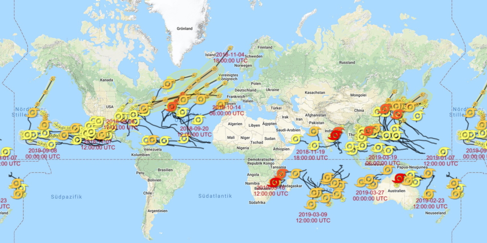 Anders sieht es auf den Inseln Hawaiis aus: Dort können von Anfang Juni bis Ende November tropische Wirbelstürme an Land treffen, die sich im Zentrum des Pazifiks aufgebaut haben. Auf der Südhalbkugel treten Zyklone meist in den dortigen Sommermonaten auf. So waren von den Folgen des Zyklons «Idai» im März 2019 vor allem Menschen in Mosambik und Simbabwe betroffen. Im April 2019 traf mit «Kenneth» ein weiterer Wirbelsturm Teile von Mosambik.