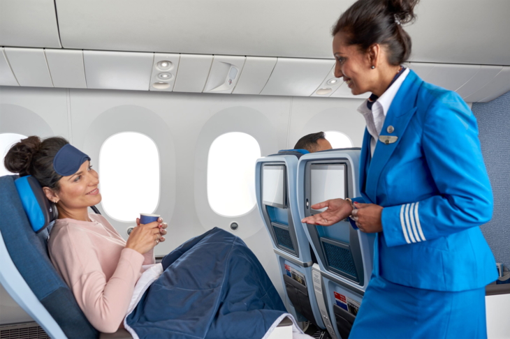 Ein kostenloses Headset mit Geräuschunterdrückung, ein 13,3-Zoll-Bildschirm für die persönliche Unterhaltung und mehrere Steckdosen ermöglichen es den Passagieren, sich die Zeit zu vertreiben und in Kontakt zu bleiben. Die zusätzliche persönliche Betreuung durch die KLM-Kabinencrew sorgt dafür, dass sich die Gäste gut aufgehoben fühlen.