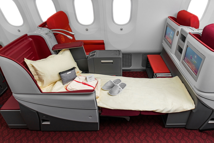 Hainan`s Business Klasse besticht durch 180° (full flat) verstellbare Sitze, die einen erholsamen Schlaf über den Wolken gewährleisten. Die neuen Schlafsitze der Business Klasse sind mit USB-Anschlüssen und Leselampen ausgestattet, die den Lese- und Arbeitsbedingungen unserer Gäste während der Reise entgegenkommen.