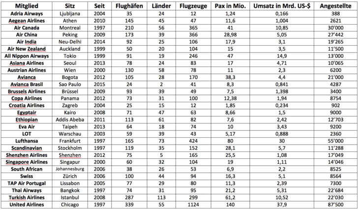 20 Jahre ist es her, seit die Star Alliance gegründet wurde. Heute besteht die Allianz aus 28 Mitgliedern. Nimmt man diese zusammen, ergibt sich ein imposantes Netzwerk: 1300 Flughäfen in 190 Ländern werden mit 4631 Flugzeugen bedient. 446‘093 Angestellte kümmern sich um das Wohl von fast 699 Millionen jährlichen Passagieren, welche aus 1100 Lounges auswählen können. Der kumulierte Umsatz der Mitglieder beträgt 173,94 Milliarden US-Dollar. Die Anzahl Passagierkilometer (RPK) beträgt aktuell rund 1351,94 Milliarden – das entspricht rund 3,3 Millionen Mal dem Umfang des Äquators.