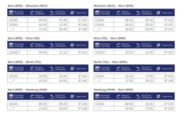 Während die fünf Skywork-Maschinen gegroundet sind, hat Adria Airways am Sonntag Nachmittag angekündigt, zwei Flugzeuge in Bern zu stationieren und ab dem 6. November Verbindungen nach Berlin, München, Hamburg und Wien aufzunehmen. Mit diesem Flugplan: