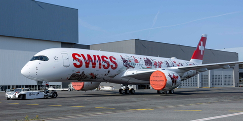 Der erste A350 der Swiss markiert einen Meilenstein in der Geschichte der Fluggesellschaft. Gestern Dienstag ist die fabrikneue Maschine erstmals aus den Hallen von Toulouse gerollt – mit der kunstvollen Sonderbeklebung «Swiss Wanderlust».