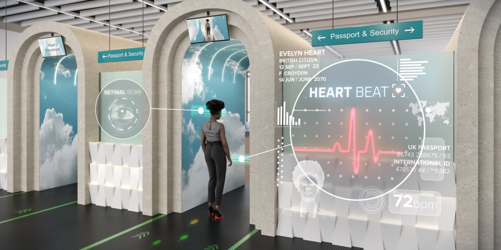 1. Die Reise zum Flughafen und das Flugerlebnis werden durch technologische Fortschritte revolutioniert. Herzschlag- und biometrische Pässe werden den traditionellen Reisepass ersetzen, damit die Passagiere ohne Probleme durch den Flughafen kommen. Die Herzschlag-Signatur und die biometrischen Daten der Passagiere werden in einem globalen System gespeichert, so wie es heute mit der Fingerabdruck-Scantechnologie funktioniert.