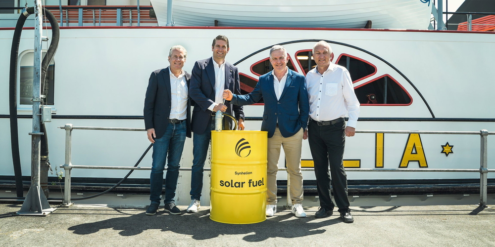Am 15. Mai 2025 erfolgte für die Schifffahrtsgesellschaft des Vierwaldstättersees (SGV) und Synhelion eine Premiere: Das über 110 Jahre alte Dampfschiff «Gallia» wurde symbolisch mit einem Fass Solartreibstoff betankt. Der synthetische Diesel stammt aus der industriellen Anlage Dawn im deutschen Jülich, wo Synhelion seit 2024 CO₂-neutrale Treibstoffe im industriellen Massstab produziert.