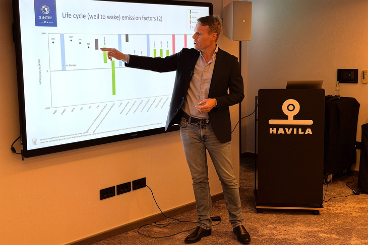 Havila-CEO Bent Martini formulierte es an Bord der Biogas-Fahrt überraschend klar: Das Wasserstoffmodul zur Nachrüstung der bestehenden Schiffsgeneration sei bereit, und wenn die Regierung die Infrastruktur schaffe, könnte man theoretisch schon nächstes Jahr damit fahren.