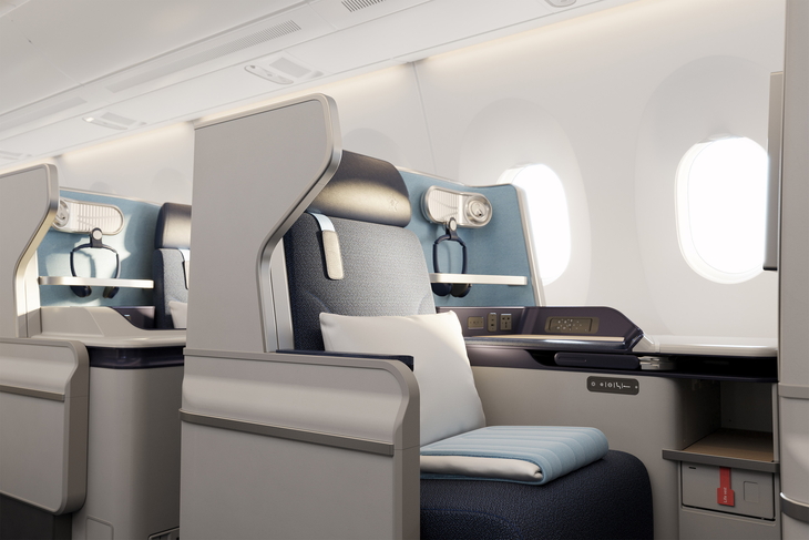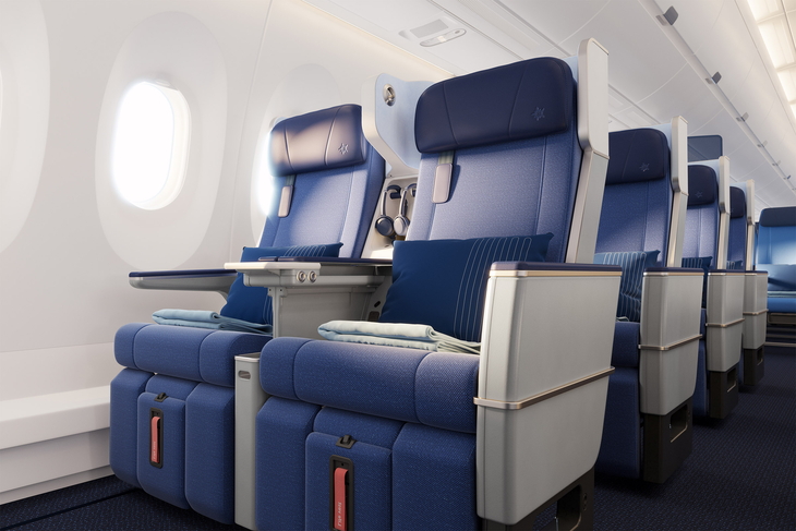 Gäste profitieren von einem Sitzabstand von rund einem Meter, einer dunkleren, edleren Gestaltung sowie einem Service, der klar über die klassische Economy hinausgeht – inklusive Welcome Drink, erweiterter Menüauswahl, Porzellan-Geschirr und kostenlosen alkoholischen Getränken.