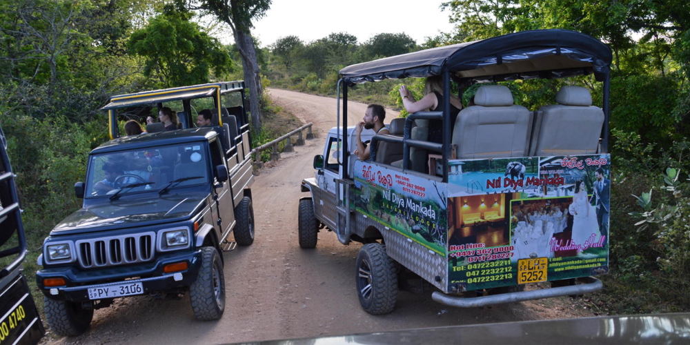 Bevor sich Enttäuschung breit macht, erscheint ein Elefantenrudel zwischen den Bäumen. Teil des knappen Dutzends sind ein Babyelefant sowie ein Teenager, der den Touristen kess seinen Rüssel entgegenstreckt, als wolle er ihnen den Marsch blasen. Per Handy macht die Nachricht von der Sichtung rasch die Runde und aus beiden Richtungen bildet sich ein Geländewagenstau. Davon lassen sich die Dickhäuter jedoch beim Abrupfen und Verspeisen von Gras und Blättern keineswegs stören. Vielleicht haben sie sich an die motorisierten Besucher gewöhnt, oder sie haben ein wirklich dickes Fell? Zum krönenden Abschluss folgt noch ein Einzelelefant, der einen Baum zu lieben scheint, an dem er sich reibt. Den Hunger stillt das Hotelfrühstück, zu dem auf Sri Lanka auch Curryspezialitäten gehören.