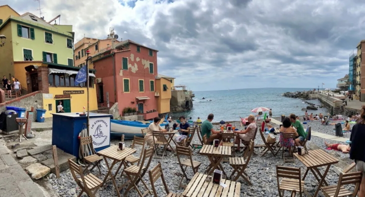 Boccadasse ist das berühmteste alte Fischerdorf bei Genua. Kleiner Kiesstrand, sehr beliebt bei allen, die gern baden. Und noch lieber Aperitivo machen in einem der kleinen Ristoranti oder Bars am Meer. Malerisch! Für die Spiaggia di Boccadasse gilt die Weekend-Regel (siehe weiter unten) ganz besonders. Vermutlich wirst Du an der Boccadasse Beach zum Morgen-Caffè eher einen Platz finden als beim Aperitif.