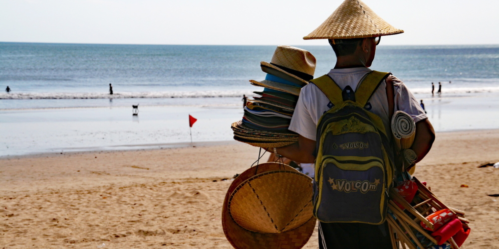 Fast 1200 Händler arbeiten laut den örtlichen Behörden am Kuta Beach auf Bali. Das seien zu viele, sagt Dorfvorsteher Wayan Wasista. «Der Strand ist schon jetzt überfüllt. Weil er sich durch die natürliche Erosion noch verkleinert, braucht es jetzt Massnahmen», sagt er.