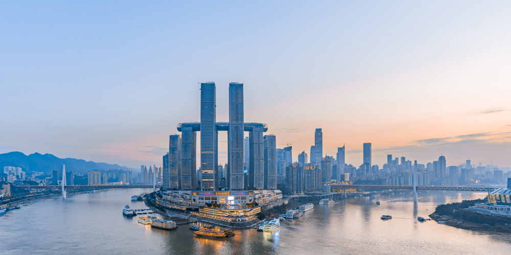 Chaotianmen-Platz: Am Chaotianmen-Platz findet der Zusammenfluss von Jangtse und Jialing auf der Halbinsel des Bezirks Yuzhong in Chongqing statt. Zudem befindet sich auf der Halbinsel mit dem Raffles-City-Gebäude eine der beeindruckendsten Bauten der Stadt.