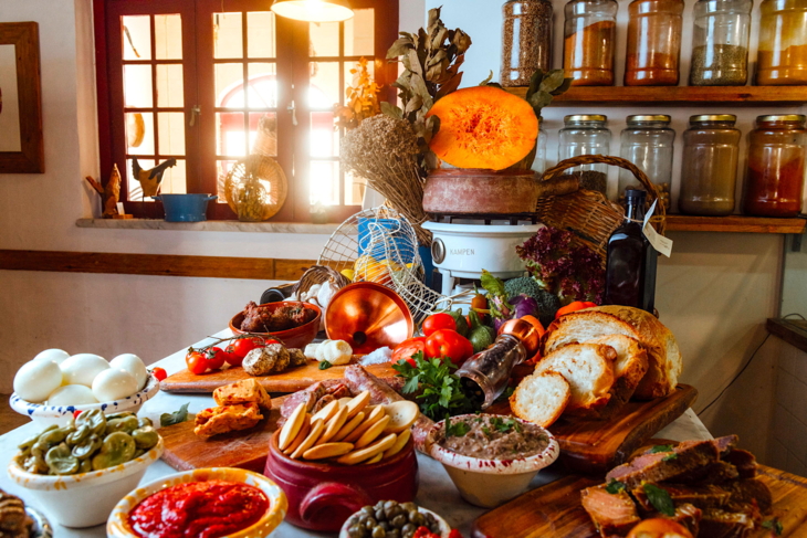 Besonders erntefrisches Gemüse findet sich auf den Speisekarten – ob als Beilagen, in Aufläufen oder als eigene Gerichte. An alten Mauern wachsen wilde Kapernsträucher, es gibt Olivenhaine und eine Vielzahl aromatischer Kräuter und frischen Knoblauch. Und wie für das Mittelmeer typisch, sind Oliven, Olivenöl und Brot aus der maltesischen Küche nicht wegzudenken. Gewürzt wird mit Meersalz, das auf der Insel Gozo in 160 Jahre alten Salzpfannen noch auf traditionelle Weise geerntet wird.