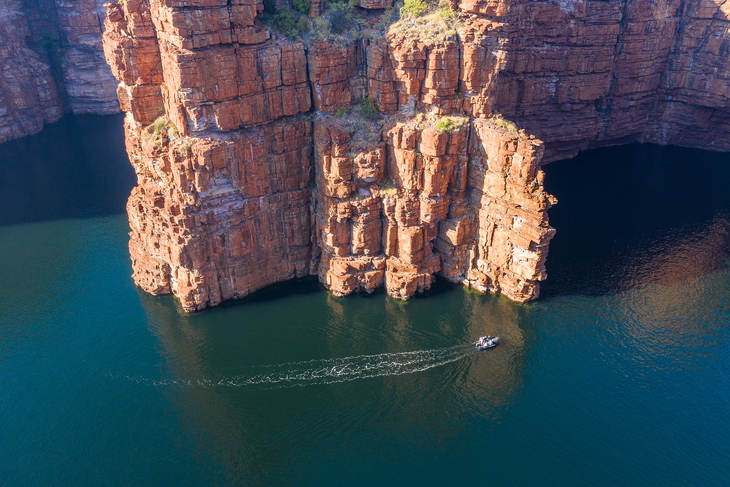 Die Doppel-Wasserfälle des King George River sind allein wegen ihrer schwindelerregenden Höhe einzigartig. Unvergesslich ist auch ein Ausflug zu den Lacepedeinseln. Dort gibt es neben zahlreichen Vogelarten und Schildkröten ausgedehnte Lagunen und die riesigen Korallenbänke des Montgomery-Riffs zu bewundern.