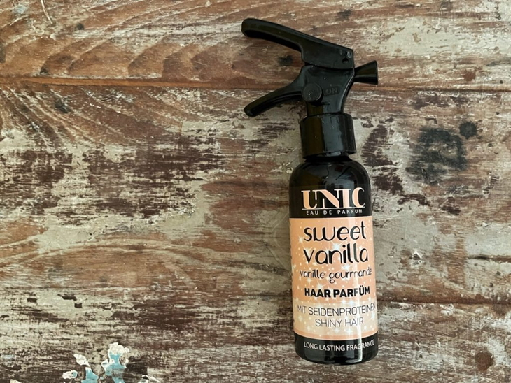 Ich habe mir dazu bei DM in Konstanz ein handelsübliches Sprühfläschchen Haarparfum namens «Sweet Vanilla» für 2.85 Euro eingetütet.