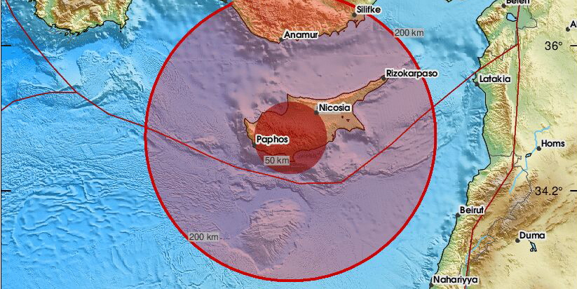 Auf Zypern hat am Mittwoch (12. November 2025) zweimal stark die Erde gebebt. Das Zentrum der Erdstösse lag rund 25 Kilometer nordöstlich der Touristenhochburg Paphos. Die schweren Erschütterungen waren auf der gesamten Insel und bis hin zu den Küsten der Türkei, Israels und des Libanon zu spüren, wie zypriotische Medien berichteten.