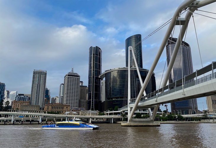Über die grossartige Fussgängerbrücke – gewidmet Neville Bonner, dem ersten Aborigine im australischen Parlament – geht es hinüber ins Expo-Gelände samt Kulturinstitutionen wie der renommierten Gallery of Modern Art. Beim künstlichen Strand wird flussnah gebadet. Besser jedenfalls als jenseits der Absperrung, werden im Brisbane River doch regelmässig neben Delfinen auch Bullsharks gesichtet. Und das immerhin rund 15 Kilometer vom Pazifik entfernt. Den Fluss selbst, dessen Sanierung ebenfalls auf der aktuellen Agenda steht, befährt man also besser mit einer Fähre.