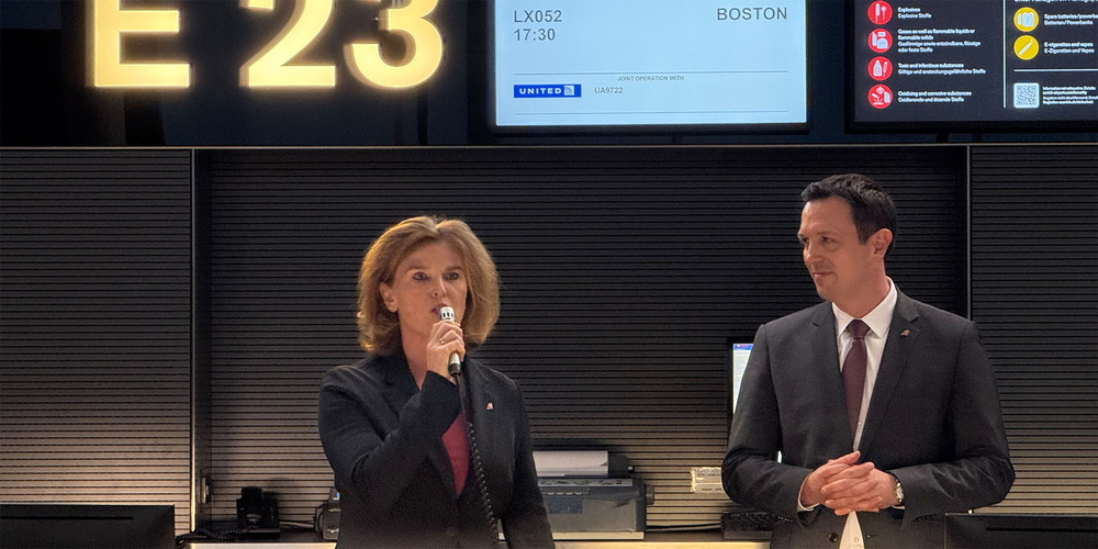 Am Donnerstagabend, 20. November, ist es soweit: Mit dem Erstflug nach Boston entlässt die Swiss ihren neuen Airbus A350 «HB-IFA» dorthin, wo er hingehört – auf die Langstrecke. Für die Schweizer Fluggesellschaft ist es ein grosser Tag. Das ist nicht nur bei den Verantwortlichen zu spüren, sondern auch bei der Crew, die diesen Flug begleitet. Bevor die Maschine auf den Jungfernflug geht, heissen der Swiss-CEO Jens Fehlinger und Heike Birlenbach, Chief Commercial Officer von Swiss, die Passagiere am Gate E23 herzlich willkommen. «Wir haben Jahre auf diesen Moment gewartet», freut sich Fehlinger bei der Ansprache.