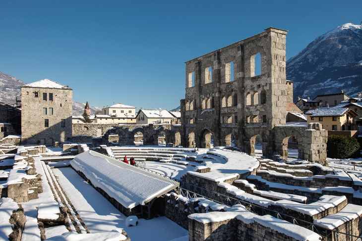 Von den Gipfeln zum Talboden, von der Piste in die Gassen, vom Sport zur Architektur und von der Gegenwart in die Antike: Wenn die neue Gondel-Verbindung die WintersportlerInnen abends wieder von Pila nach Aosta bringt, schliesst sich der Kreis, und viel Kultur steht auf dem Programm.