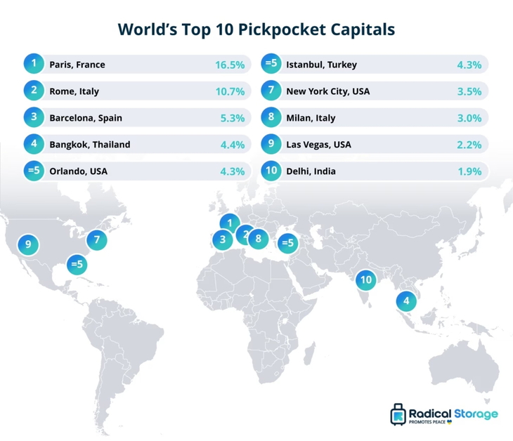 Eine aktuelle Untersuchung des Gepäckaufbewahrungs-Anbieters Radical Storage hat nun beleuchtet, wo Reisende besonders häufig Opfer von Diebstahl, Betrug oder Raub werden. Dafür wurden über 13'000 englischsprachige Google-Bewertungen aus dem Zeitraum Oktober 2024 bis November 2025 ausgewertet.