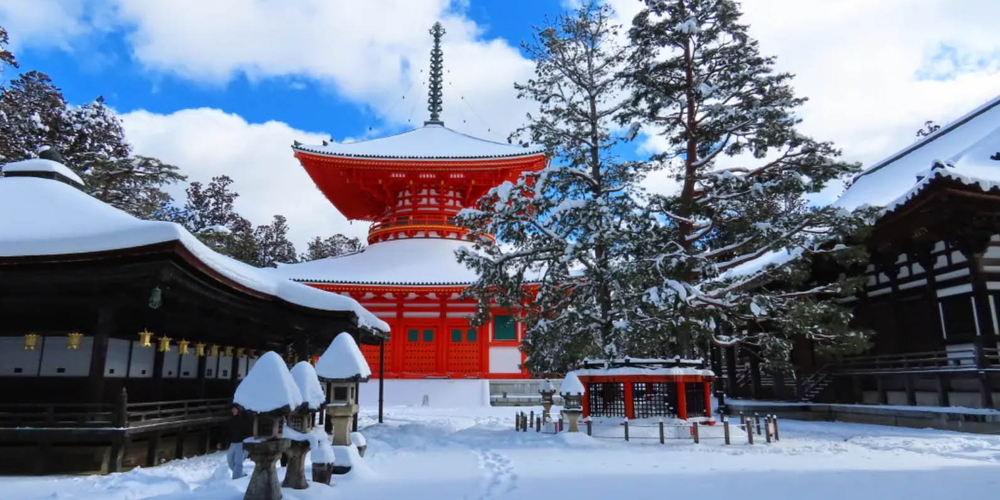 Nach der Ankunft am Bahnhof Gokurakubashi in Koya können die Reisenden mit der Seilbahn weiter zum Mount Koya fahren. Der Berg gehört zu den von der Unesco anerkannten heiligen Stätten und Pilgerwegen in den Kii-Bergen. Das Gebiet ist das Zentrum des Shingon-Buddhismus, der im 9. Jahrhundert vom Mönch Kobo Daishi nach Japan gebracht wurde. Hier befindet sich auch der grösste Friedhof des Landes mit 200'000 Gräbern.