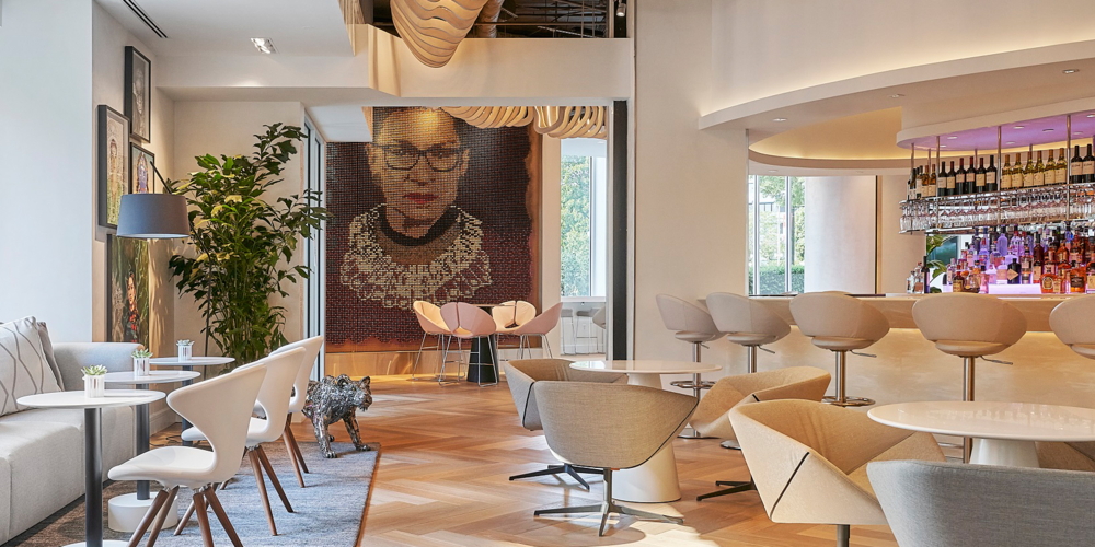 Eine «Portrait Gallery» in der Lobby des Hotels mit zehn Kunstwerken starker Frauen empfängt die Besucher. Darunter befindet sich ein aussergewöhnliches Porträt der erst kürzlich verstorbenen Richterin Ruth Bader Ginsberg, das sowohl ihr lebenslanges Engagement für Frauenrechte und Gleichberechtigung als auch ihren Humor in einer persönlichen und intimen Form würdigt. Das von Andrea Sheehan entworfene und von den Julie Coyle Studios produzierte Bildnis der Frauenrechtlerin besteht aus 20'000 handbemalten, zweckentfremdeten Tampons. Ein weiteres Porträt zeigt Shirley Anita Chisholm, die erste Abgeordnete im US-Repräsentantenhaus und die erste Demokratin, die als Präsidentin der Vereinigten Staaten kandidierte. Zusätzliche Installationen wie eine geschwungene Wand, bestehend aus 8000 Buttons von weiblichen Protestbewegungen der letzten Generationen, zahlt Tribut an das 100-jährige Jubiläum des Frauenwahlrechts in den USA. Die Fassade des Hotels zieren Kriegerinnen, die sinnbildlich als Wächterinnen für das Gebäude stehen. Geschaffen wurde das Wandgemälde von der lokalen Künstlerin Cita Sadeli, auch bekannt als Miss Chelove.