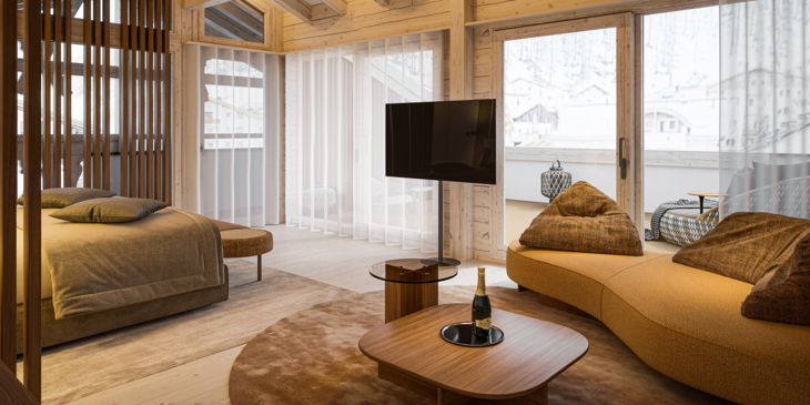 Die letzten Arbeiten laufen auf Hochtouren. Zeitweise sind bis zu 100 Handwerker damit beschäftigt, die Innenräume des Hotels komplett zu renovieren. Bis auf den Spa, der 2012 vollumfänglich saniert wurde, «entsteht im Innern praktisch ein neues Hotel», so Eliane Zegg, gemeinsame Inhaberin mit Ehemann Hubert Zegg. Mehr als 20 Millionen Franken werden investiert, um die 20 Suiten und 25 individuellen Doppelzimmer zusammen mit dem Architekturbüro Fanzun aus Chur unter der Projektleitung von Jeremy Jenal neu zu gestalten. Neu stehen elf Zimmerkategorien zur Auswahl, alle mit individuellem Touch und mit Liebe zum Detail eingerichtet. Der luxuriös-elegante Stil wird von einheimischen Materialien wie Arven- und Lärchenholz sowie Granit geprägt. Für den «Alpencharme mit besonderem Chic» sind Eliane Zegg und die Innerarchitektin Cathrin Hoch und Innenarchitekt Burkhart Röck verantwortlich. Die Koordination des Baugeschehens liegt in Olivier Zeggs Hand, dem Sohn des Inhaberpaares und Juniorchef der ZEGG-Betriebe.
