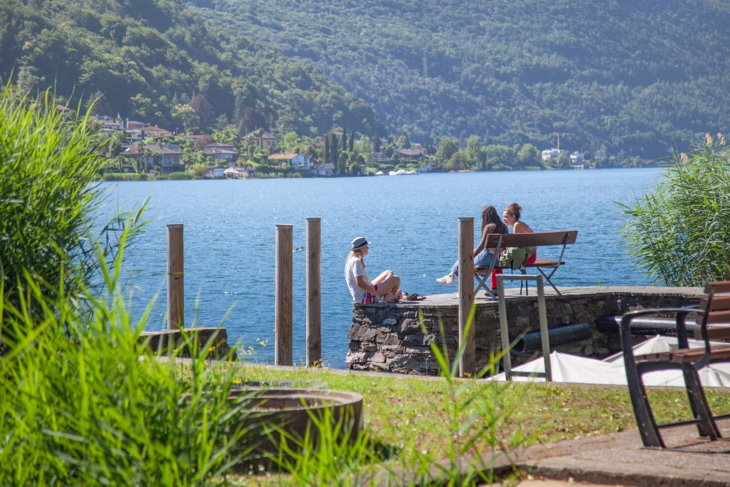 Nur ab und zu wird die Ruhe durch den Motor eines Kleinflugzeugs gestört, nicht weit weg ist nämlich der regionale Flughafen. Sonst aber ist es im Centro Magliaso, diesem weitläufigen, ungewöhnlichen Ferienzentrum mit Seeanschluss nahe der italienischen Grenze, unendlich idyllisch.