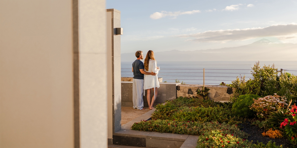 Die 116 Zimmer und Suiten verbinden schlichte Eleganz mit warmer Natürlichkeit. Jede Unterkunft verfügt über eine Terrasse oder einen Balkon, viele bieten Meerblick bis zum Teide auf der Nachbarinsel Teneriffa.