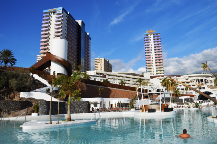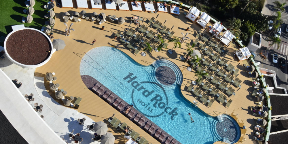 Das «Rock Spa» auf Teneriffa bietet dann auch Musikmassagen und die Gäste finden lediglich Ruhe, wenn sie auf die «Sound of your Stay»-Option im Zimmer verzichten. Ein eigener «Vibe Manager» ist für die Atmosphäre im Hotel zuständig. Palladium-Boss Matutes junior möchte an den Erfolg seines ersten Hard Rock Hotels auf Ibiza anknüpfen. Weil das im Winter geschlossen bleibt, ist auf Teneriffa erfahrenes Personal von der Baleareninsel im Einsatz. Aus den über 1'000 Zimmern der beiden Festival-Hotels wurden 624, davon 260 Suiten, sowie ein Konferenzzentrum mit viel Tageslicht, in den beiden Hard Rock-Türmen Nirvana und Oasis. Während ersterer mit eigenem Pool Erwachsenen vorbehalten bleibt, ist Oasis für Familien ausgelegt.