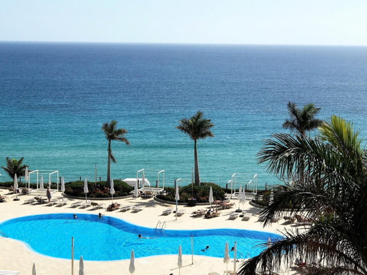 Die Ruhe ist tatsächlich erstaunlich. Morgens um neun kräuselt nur der Wind die Wasseroberfläche im tiefblauen Hotelpool. Die Morgenschwimmer sind längst beim Frühstück und bis auf ein einsames Pärchen, das auf seinen Liegen in Zeitschriften blättert, sind die meisten anderen Gäste wohl noch nicht aus den Federn. Nicht einmal, um die Liegen an den besten Plätzen mit Handtüchern zu besetzen. Das scheint hier nicht üblich zu sein. Angenehm ist auch, dass der Zimmerservice sehr dezent am späten Vormittag startet und nicht lautstark bereits am frühen Morgen. Es ist ganz offensichtlich, dass die Tage hier später beginnen.
