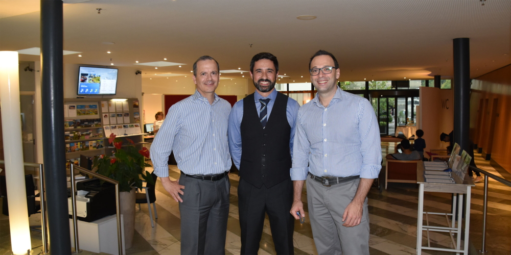 Gregor WaserDie Hapimag-Konzernleitung hat die Ärmel hochgekrempelt. Herzlich ist die Begrüssung von CEO Hassan Kadbi, CFO Saverio Alberti und Resortmanager Dominic Kutschera. Sie empfangen im Hapimag-Resort in Interlaken Journalisten zum Halbjahres-Gespräch.